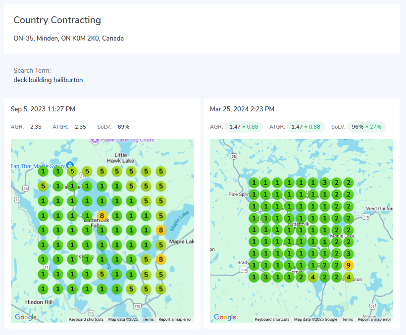 - Domain Authority Growth → With consistent link building and optimized on-page content, the site’s authority increased, allowing it to compete more effectively with established contractors in Haliburton County.